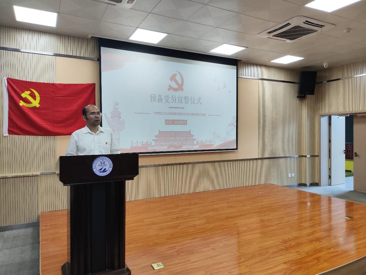“我志愿加入中国共产党,拥护党的纲领,遵守党的章程,履行党员义务,执行党的决定,严守党的纪律,保守党的秘密……”党旗下誓言之声庄严肃穆,预备党员们握拳起誓不负党员的责任与担当。2023年6月21日,西北工业大学伦敦玛丽女王大学bevitor伟德国际1946第三党支部在公司410报告厅举行了预备党员入党宣誓仪式。宣誓仪式由支部党员宋佳音老师主持。