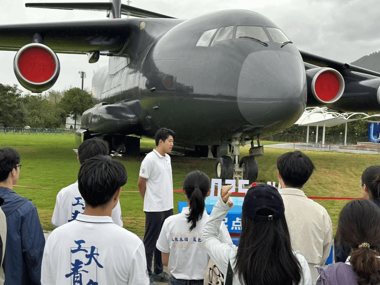 走进西北工业大学军工素质教育实践中心,同学们实地参观了运-20、轰-6、歼轰-7等多种型号国产飞机。出身飞行员家庭的预备党员张墨淳同志,在各型号飞机领域有着不少研究积累,他带领同学们依次参观了运-20“鲲鹏”大型运输机、轰-6轰炸机、歼轰-7歼击轰炸机等多个国产主力战机,从各类飞机的研发背景、技术特点、战略价值等多个维度进行了深入浅出的讲解。
