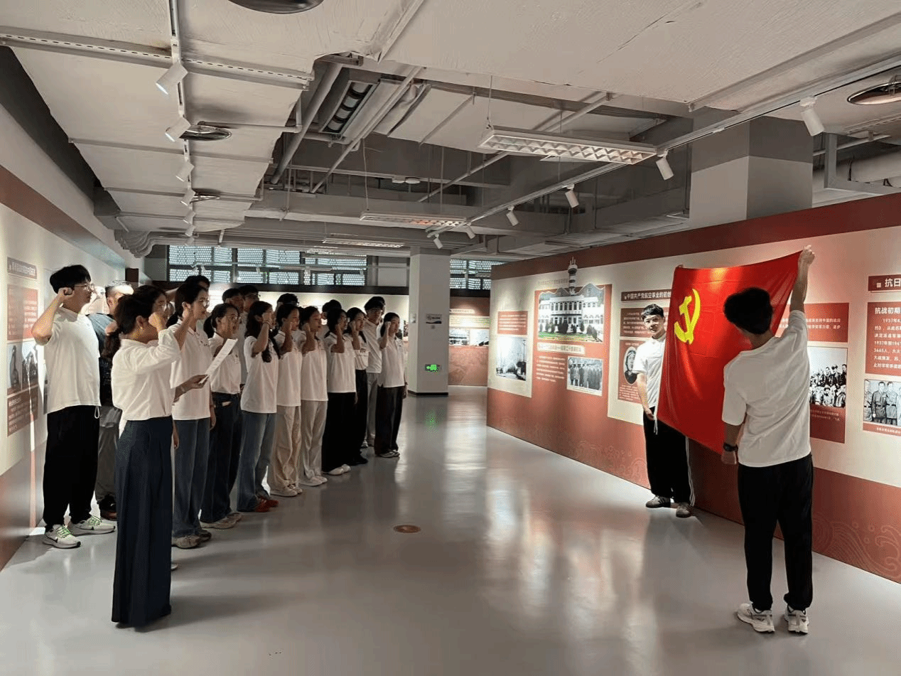 在中国航天史展馆,在雄壮激昂的《国际歌》旋律中,同志们目光如炬,神情庄重。全体预备党员整齐列队,在支部书记刘佳老师的领誓下,面向党旗庄严宣誓,铿锵有力的誓言在展厅回荡,字字千钧,掷地有声。这一刻,拳拳赤子心与铮铮誓言交相辉映,这场浸润式的党性教育,让每一位预备党员进一步强化了身份认同和责任担当,激励大家将入党誓词内化于心、外化于行,以实际行动践行对党的庄严承诺。