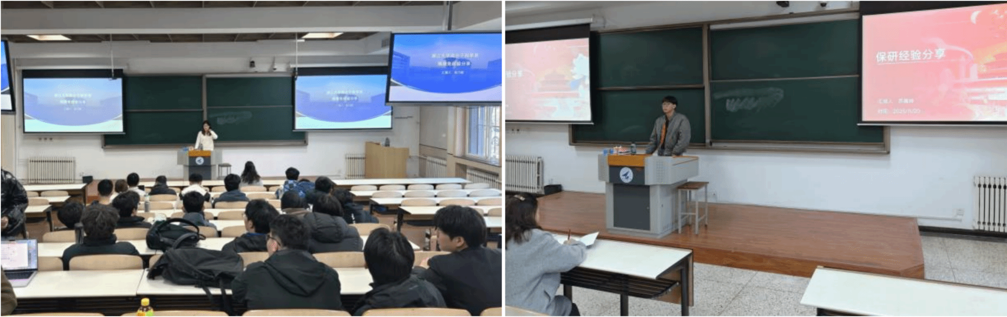 支部邀请大四员工邓益凡、张瀚文、张乃珺、涂弘博和苏晨坤等5位已成功保研至清华大学、浙江大学及知名科研院所的学长学姐作为分享嘉宾。他们结合自身经历,围绕“保研政策解读与时间线规划”“专业成绩提升与核心竞争力塑造”“夏令营及预推免需要注意的问题与面试经验”等关键内容展开细致讲解,既分享了材料准备、院校选择等方面的实用方法,也针对同学们普遍关心的“如何平衡科研与课程学习”“研究所的科研优势”等问题给予详尽解答。互动环节气氛热烈,嘉宾们的耐心解答帮助在场员工对保研之路有了更清晰的认识,有效缓解了焦虑情绪。