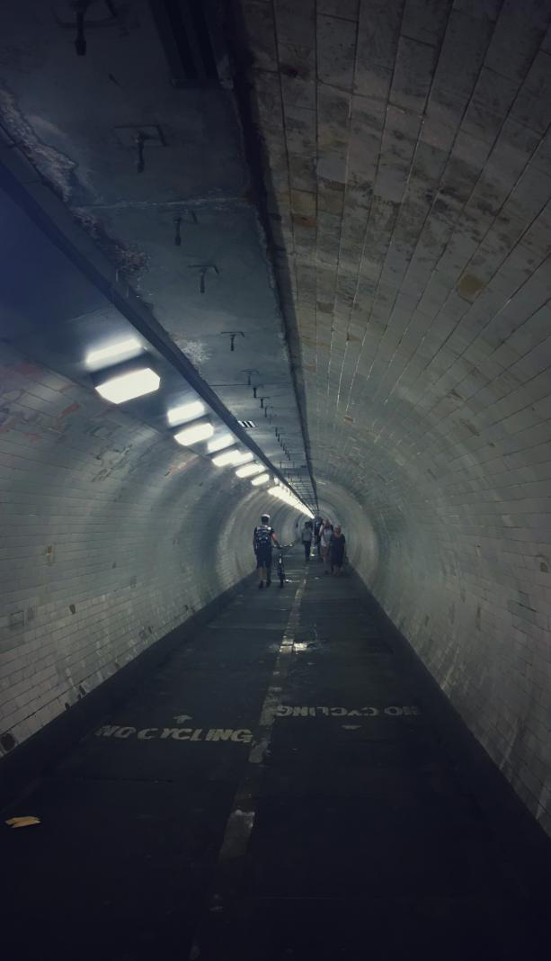 Different from other groups, we took a special way–a tunnel deep beneath River Thames. As we slowly reached the bottom, the wet air with typical smell came to our faces. There is a big elevator in the tunnel so that a lot of cyclers take their bikes to across the river.We have to say, walking underneath the water is a fantastic experience.