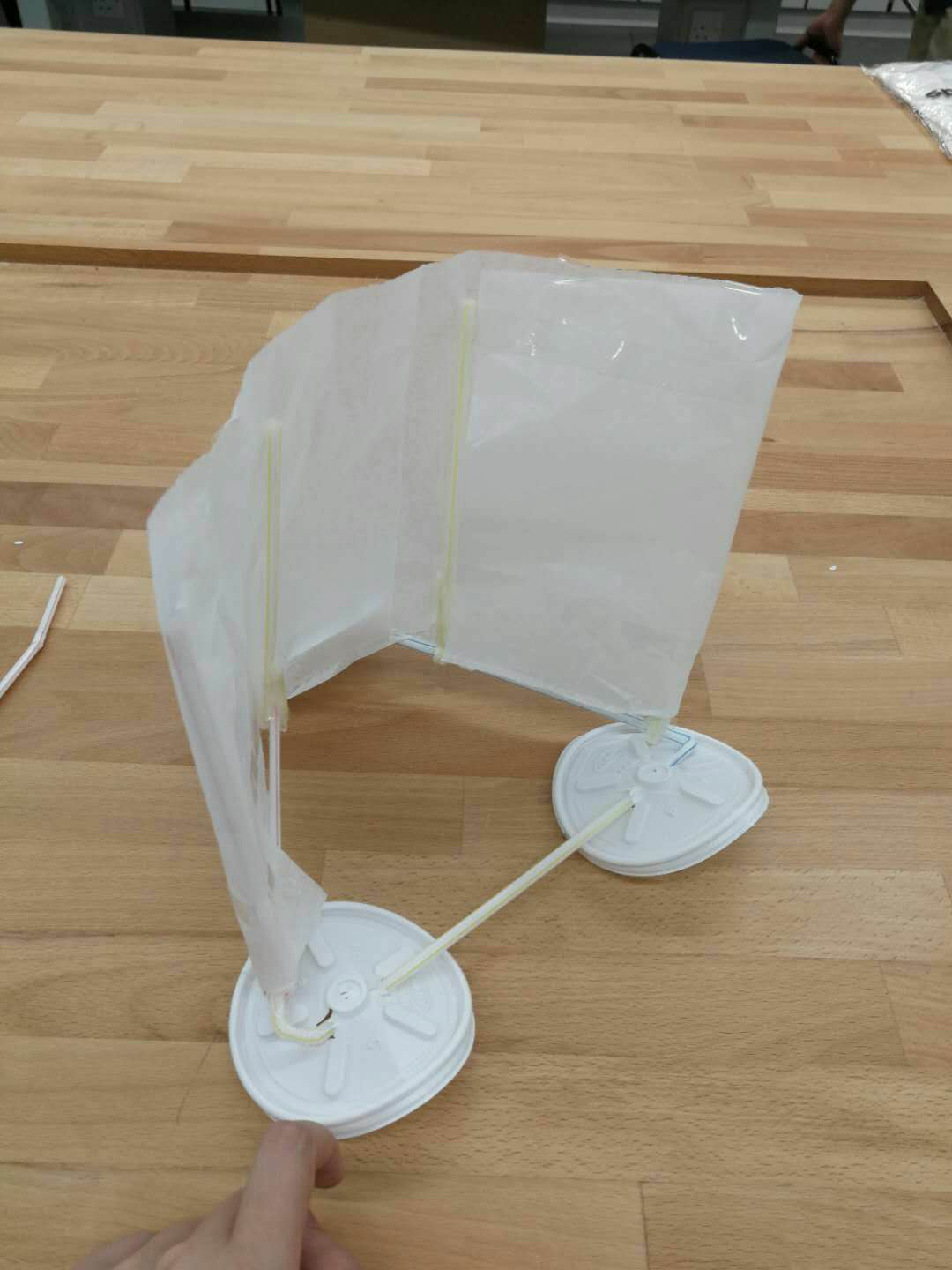 In the air vehicle part, we analyzed the situation wrongly which resulted in imperfect. When we saw the small fans, we decided to apply the wind power instantaneously but not continuously. Thus, the tires of our vehicle were designed to slide instead of rollingon the plane, which are different from other groups. However, we underestimated the wind power of the small fans. Although they had low intensity, the wind could go across quite a long way. It was a pity that the vehicle of our group was beautiful and slid over a long distance with high intensity wind, but we did not achieve a satisfying result in the competition. Anyway, we cooperated and worked hard for the same aim. They were quite attractive activities.