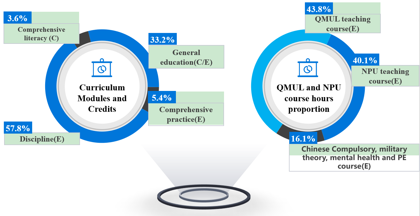 Reference: Code QX courses are taught by QMUL. Code NX courses are taught by NPU. Code U courses are Chinese Compulsory Courses, Mental Health, Military Theory courses from MoE, as well as some elective courses.