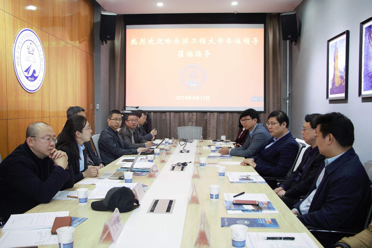 On the morning of April 13th, Chi Miao, Deputy Director of the International Exchange and Cooperation Department, Tian Yuxin, Deputy Director of the State-owned Assets Management Department, and Mao Jize, Associate Dean of the Undergraduate School, with other 8 people from Harbin Engineering University went to QMES to investigate the work of Sino-foreign cooperative education. Kong Jie, Dean of QMES, and Fan Xiaoli, Vice Dean met with the guests in the conference room and conducted in-depth discussions. Zhang Wentao, Executive Vice Dean of School of Foreign Studies, Gong Jian, Deputy Director of Teaching Affairs Department, Zhang Peng, Deputy Director of the Finance Department, Wang Geming, Deputy Director of Information Center of the School of Foreign Studies, and relevant staff of Office of International Cooperation attended the meeting.