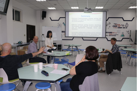 In order to effectively improve teaching level of teachers in English, further enhance quality of international education, and promote the exchange of teaching experience among teachers, QMES held a lecture exchange activity of English teaching trial for autumn semester teachers from 2018 to 2019 in Innovation Activity Room on April 20th, 2018.