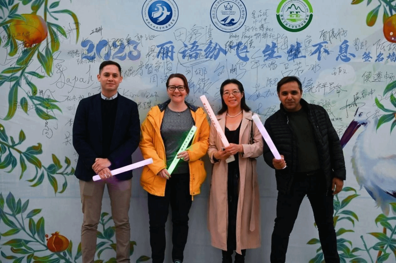 Recently, the theme freshmen welcome party “Graceful Words Flourish Unceasingly”, jointly organized by QMES, the School of Foreign Studies, and the School of Ecology and Environment, was grandly held at the Soaring Student Center. Dai Fuping, Secretary of the QMES Party committee, Cheng Yin, Deputy Secretary of the QMES Party Committee, Huang Quanzhang, Secretary of the Youth League Committee of QMES, representatives of Chinese and British teachers, as well as teachers including Wang Gaozu, Secretary of the Party Committee of the School of Foreign Studies, Ma Ying, Deputy Secretary of the Party Committee of the School of Foreign Studies, Wu Ruilin, Secretary of the Youth League Committee of the School of Foreign Studies, Zhang Yongxin, Deputy Secretary of the Party Committee of the School of Ecology and Environment, and freshmen in grade 2023 of the three colleges, attended the party.