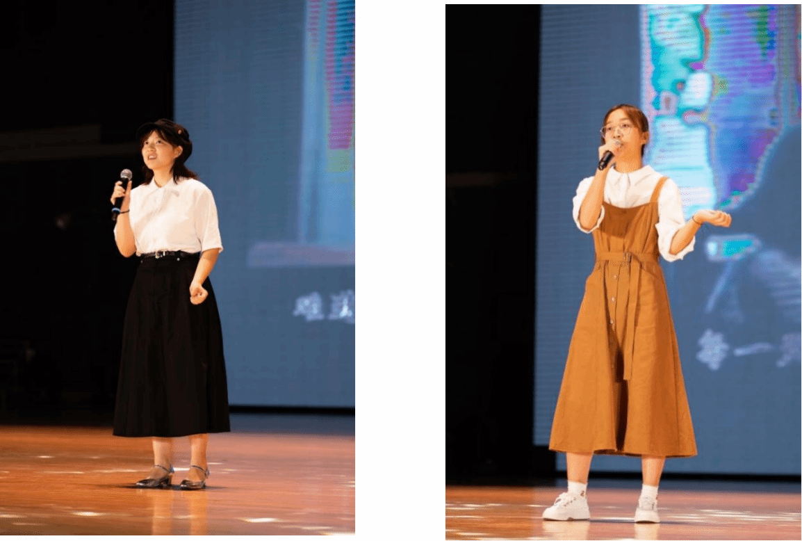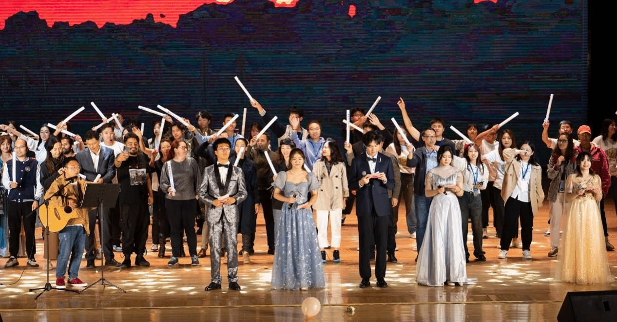The BBox & Rap Band of Jiuxianyin Art Troupe showed their exceptional artistic talent with the song “Just a Little Bit”, which once again drove the atmosphere of the scene, and the mellifluous songs floated over the Soaring Student Centre.