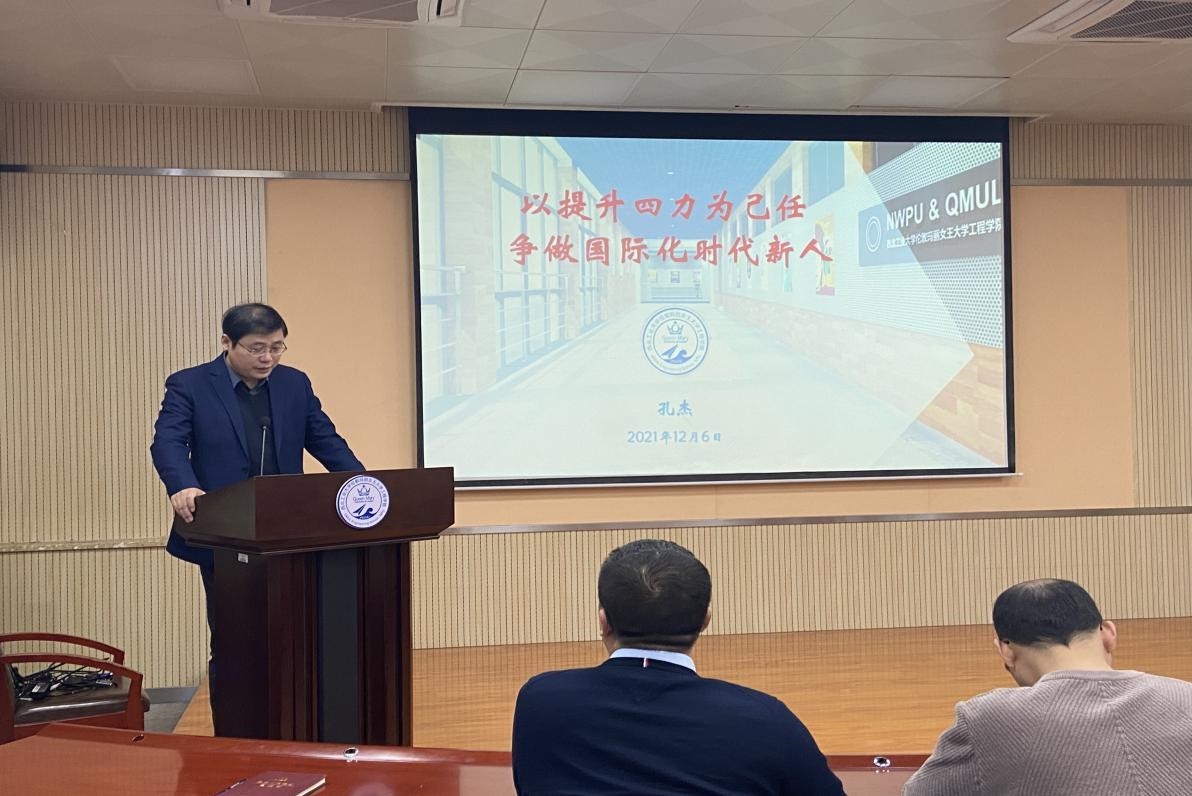 In this training, Dean Kong Jie introduced the basic situation, educational concepts and development history of QMES with the theme of “Taking the Improvement of Four Abilities as Our Own Responsibility; Striving to Be New Talents of the International Era”, and reviewed the hard work and efforts made by the leaders of NPU and the heads of relevant departments for the establishment of QMES.Then,he noted that QMES’ steady development was benefited from the full cooperation between NPU and QMUL, and was also the result of the joint efforts of two universities. Thus,as the management of school, we should be responsible not only for two universities, but also for our students and society.