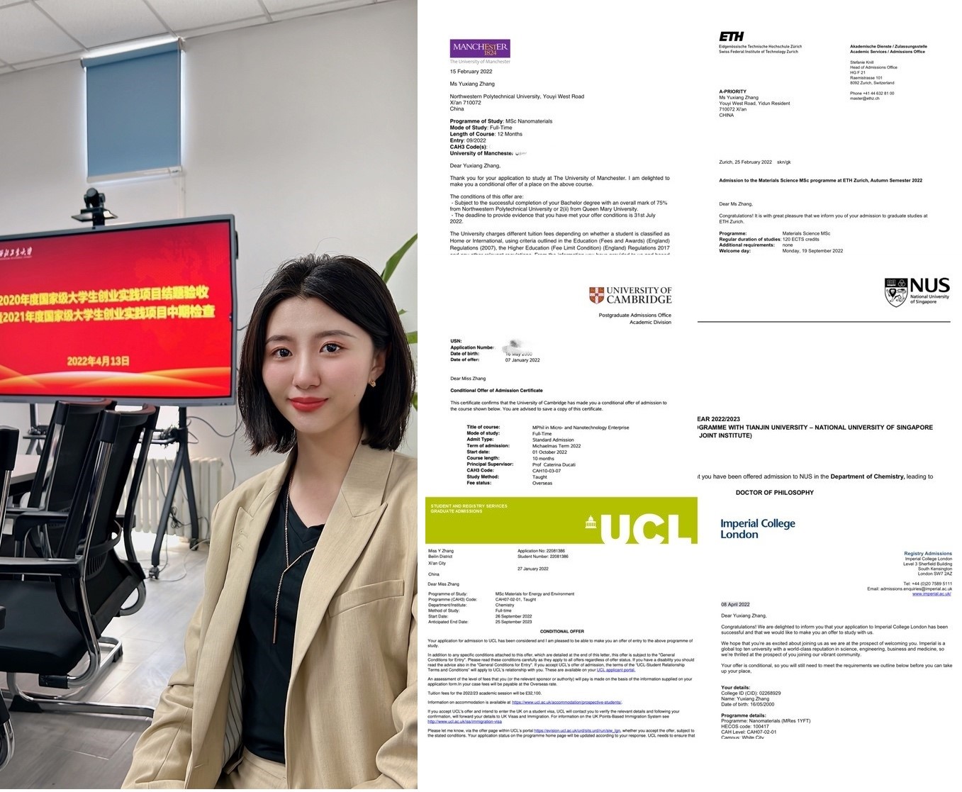 Zhang Yuxiang, a 2018 undergraduate student majoring in polymer materials and engineering of QMES, recently successfully received offers from 6 world-class universities, including National University of Singapore (Full Scholarship for Doctorate), University of Cambridge, ETH Zurich Switzerland, Imperial College London, University College London, and University of Manchester.