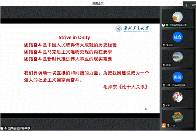 Considering the current difficulties of COVID-19, Dean Fan hoped that all students could carry forward the spirit of unity and struggle and work together to overcome the difficulties. At the same time, she asked the students to think deeply in the process of teamwork and effectively mobilize the enthusiasm of each member. She also hoped that students could learn from each other and give full play to the role of unity and struggle.