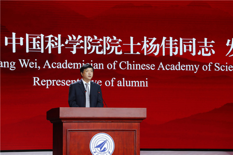 Representing the alumni, Yang Wei, the academician of CAS and vice general manager of Aviation Industry Corporation of China sent his congratulations to the NPU's 80th birthday. After reflecting on his school years, he expressed his deep love and best wishes with four words, namely "ambition, devotion, contribution, and pride".