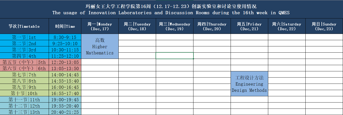 Time Table for Week 16