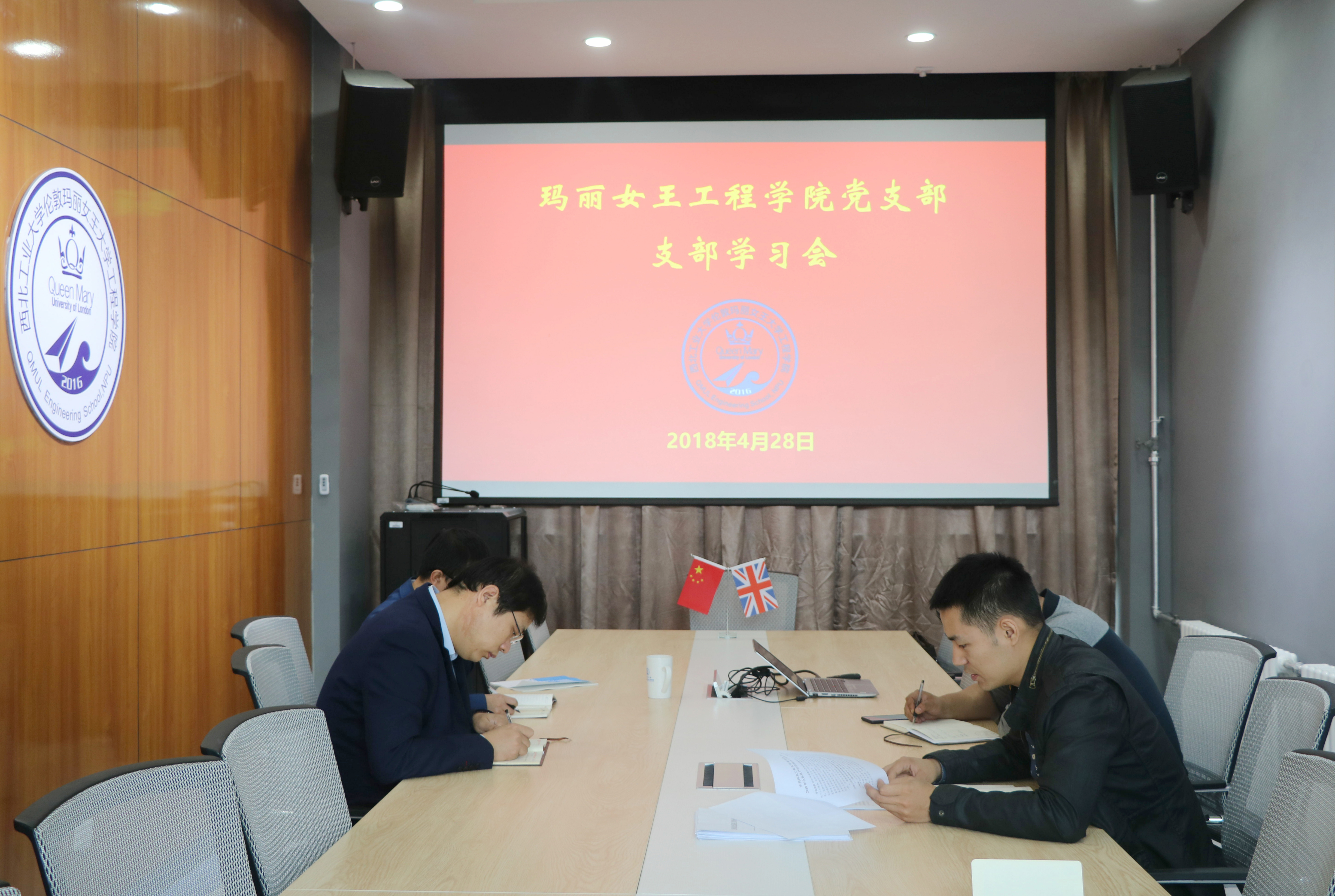 On the afternoon of April 28th, the Party Branch of QMES held a special study seminar in Room 413 of Chang'an Campus. The meeting was chaired by the Branch Secretary Kong Jie, and all of the party members of the branch attended the meeting.