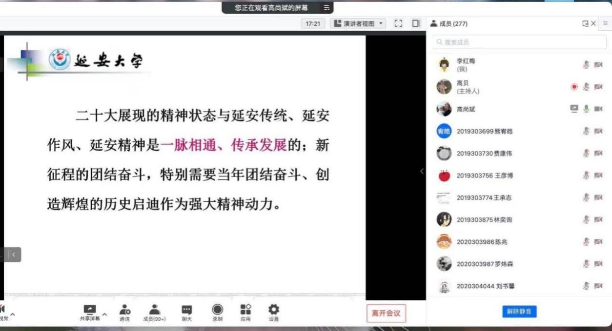 Professor Gao stressed that to make the goals set on the 20th CPC National Congress come true, the prerequisites are to carry forward Yan’an traditions, Yan’an style and Yan’an Spirit over the whole Party, to understand and implement the spirit of the 20th CPC National Congress, to stay confident and build strength, to uphold fundamental principles and break new ground, and to forge ahead with enterprise and fortitude.