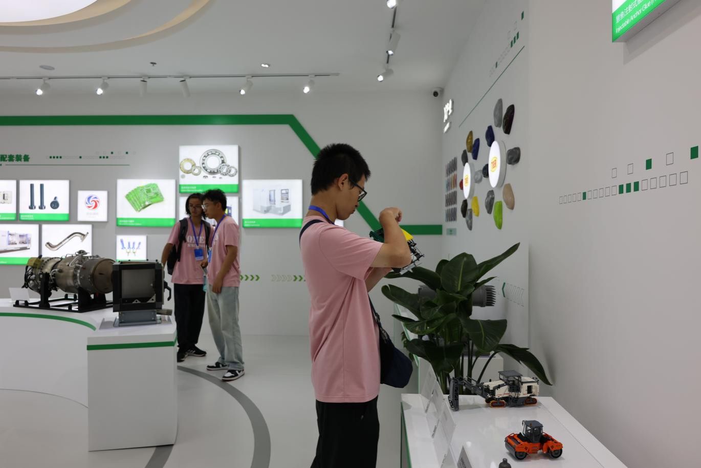 认识实习的第三天,同学们乘坐大巴沿省道和京沪高速一路开至苏州东部到达江苏汇博机器人技术股份有限公司。江苏汇博机器人技术股份有限公司是一家专门从事机器人技术研发与产业化的高新技术企业,同时也是江苏省先进机器人技术重点实验室的共建单位,所谓“汇博”,即“汇聚智造,博育英才”。一踏入展厅,同学们便被琳琅满目的机械设备和电子控制屏所吸引。从多层IP网络的模拟终端到三轴、五轴数控系统数字孪生产品,再到智能制造虚拟调试与生产管控实训创新平台和基于智能视觉的多机器人协同作业实训创新平台,这些展品无不深化了同学们的专业理解与深度知识。此外关于3D成像摄像机、机器人深度学习、人脑和机器的学习次数与功耗的协调对比等领域的内容,都为同学们提供了宝贵的学习机会。