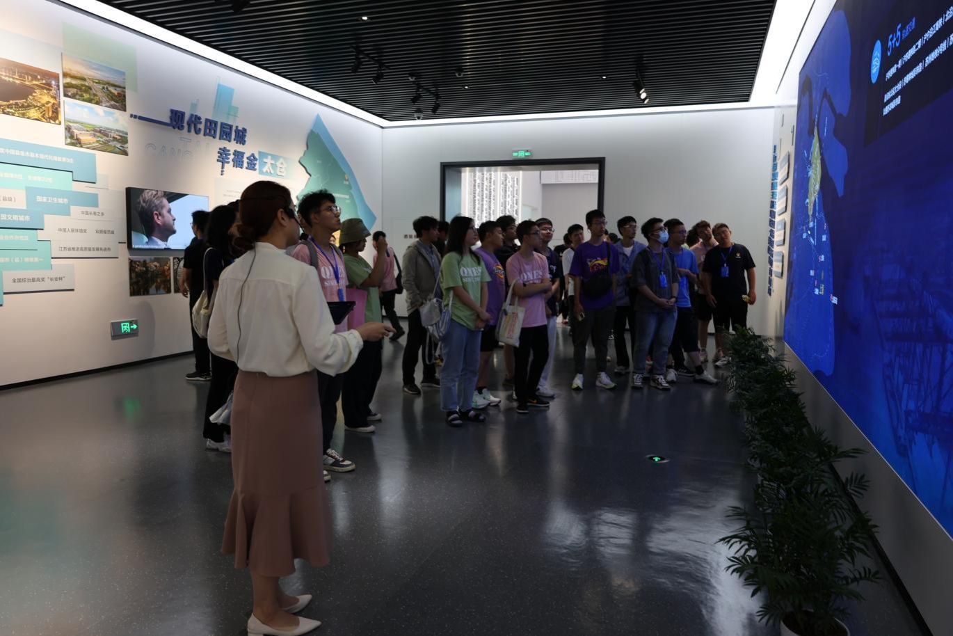最后,全体成员乘车前往娄江新城规划展示馆。展示馆内的显示仪器十分先进,互动平台具有很强的可视化特性,充满科技感。讲解员以专业的方式向大家介绍了娄江新城的未来规划:“娄江新城将围绕‘产城融合、绿色、数字’的定位,全力构建‘长三角中德合作示范区、临沪智能制造集聚区、大学科研成果转化区、虹桥商务核心配套区’,努力打造成为全国知名的‘中德创新城’。” 这座“未来城市”正在拔节生长,宏伟蓝图正照进生动现实。经过深入的实习体验,同学们深刻领悟到“报效祖国”不仅是一句口号,更是每一位工大人内心深处的誓言。在历史和未来的交汇点上,这份忠诚和热爱变得尤为珍贵。无论是城市的繁华还是学术的殿堂,同学们将这份初心转化为实际行动,为祖国的明天而努力。