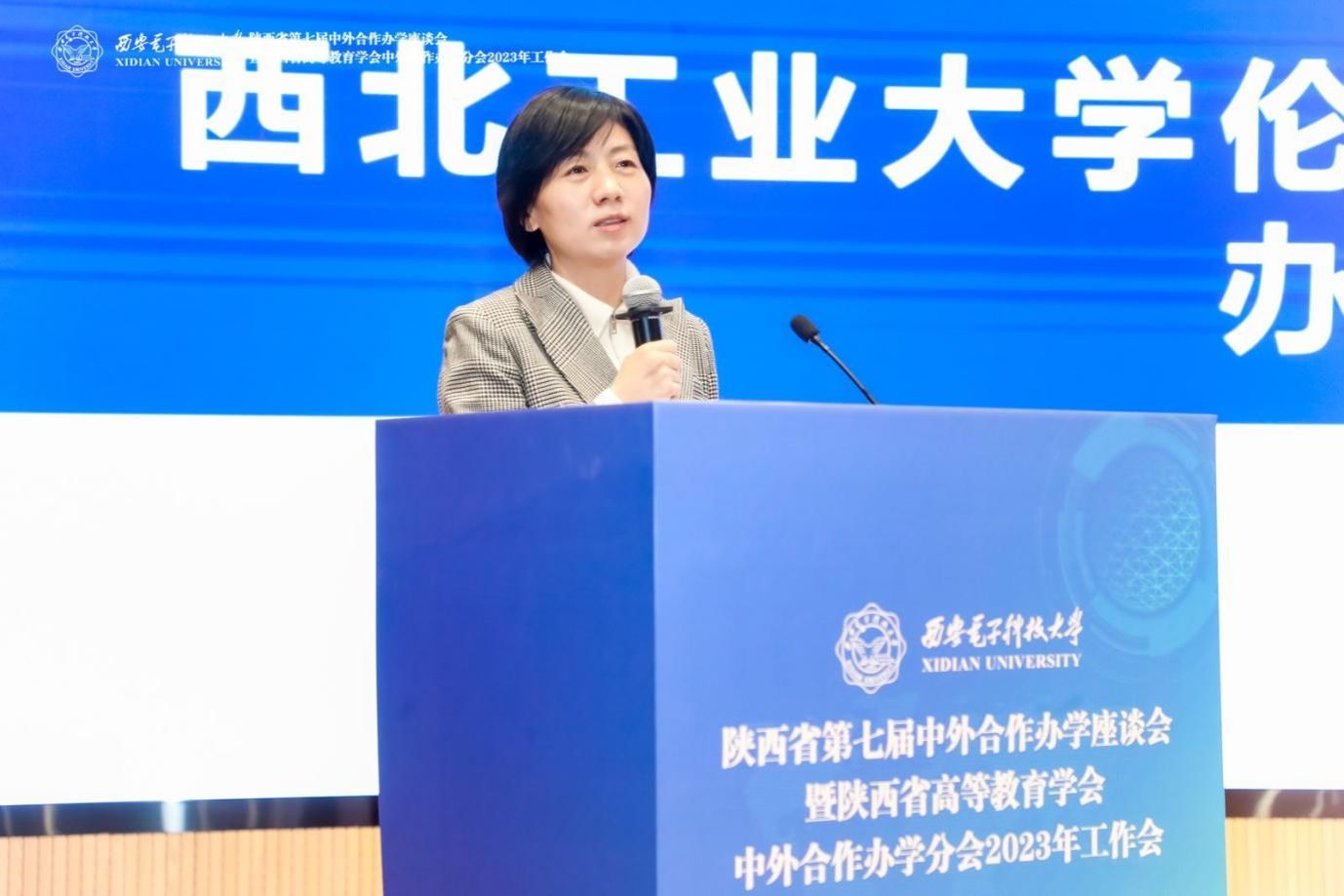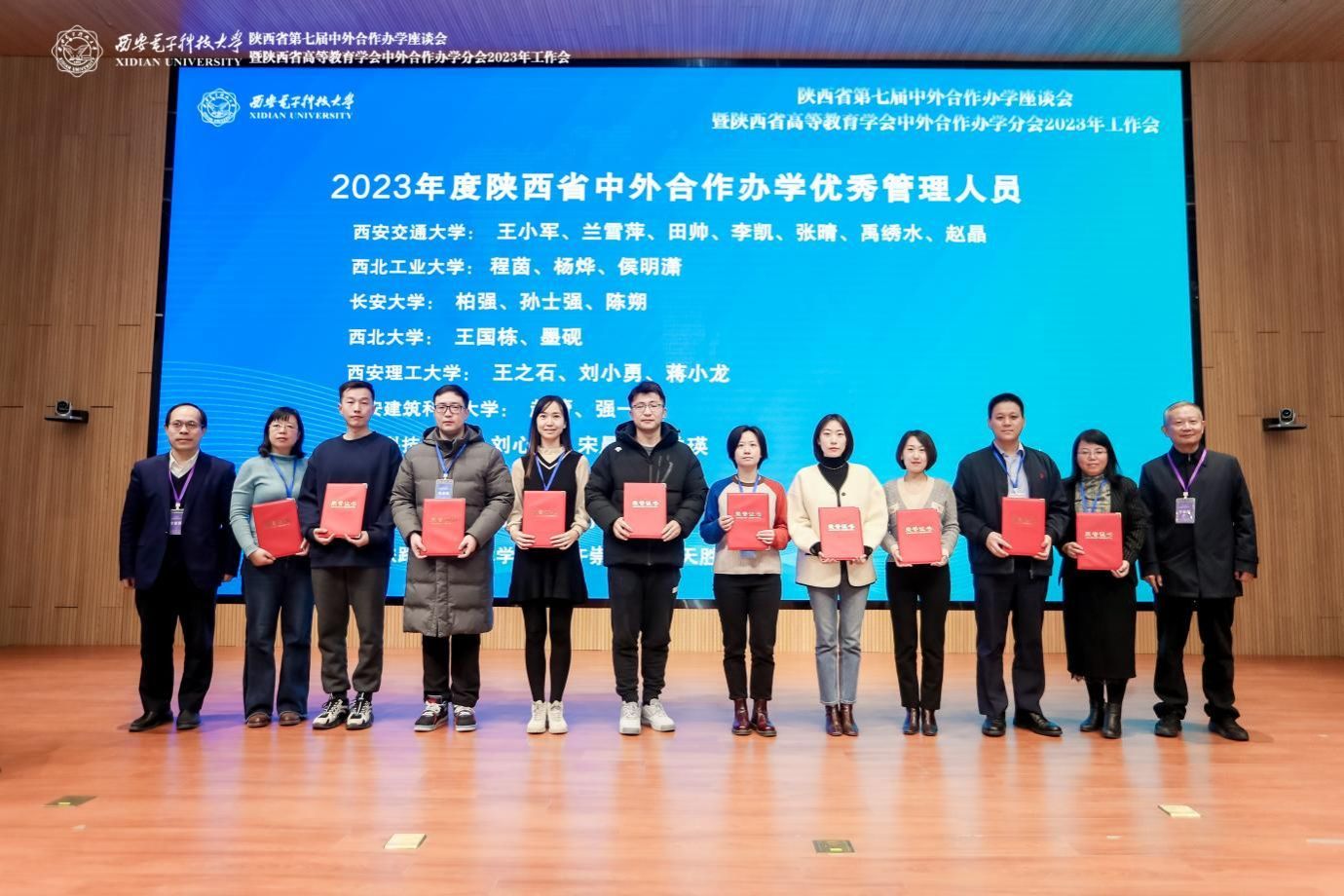 12月19日,陕西省第七届中外合作办学座谈会暨陕西省高等教育学会中外合作办学分会2023年工作会在西安电子科技大学长安校区召开,教育厅申雪峰副厅长参加会议。会议对2023年度优秀机构(项目)、管理人员、专家和组织单位进行了表彰。会上,公司经理范晓丽作为获奖单位负责人,向与会人员分享了公司的办学经验和办学成效。
