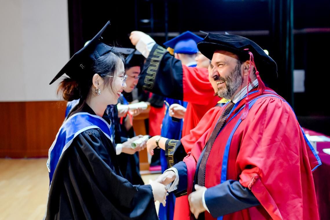 伦敦玛丽女王大学董事长Colin Bailey教授在毕业贺词中表示,能第一次亲临典礼现场和同学们一起庆祝圆满毕业非常高兴。他对全体QMES教职员工、员工及其亲友表示感谢。他指出,合作、沟通与协作是克服全球共同挑战的关键因素。玛丽女王bevitor伟德国际1946始终坚持融合中英双方高等教育的精髓,为员工提供优质的国际化本科教育。他强调,作为中外合作办学模式下成长的员工,大家拥有独特且强大的复合型能力,希望同学们在中国或未来工作和生活的地方,为社会发展做出积极贡献。在未来的几年中,伦敦玛丽女王大学将和大家保持联系,帮助大家充分利用伦敦玛丽女王大学员工会的资源,通过全球员工网络,建立新的联系,持续发展和提升职业生涯。