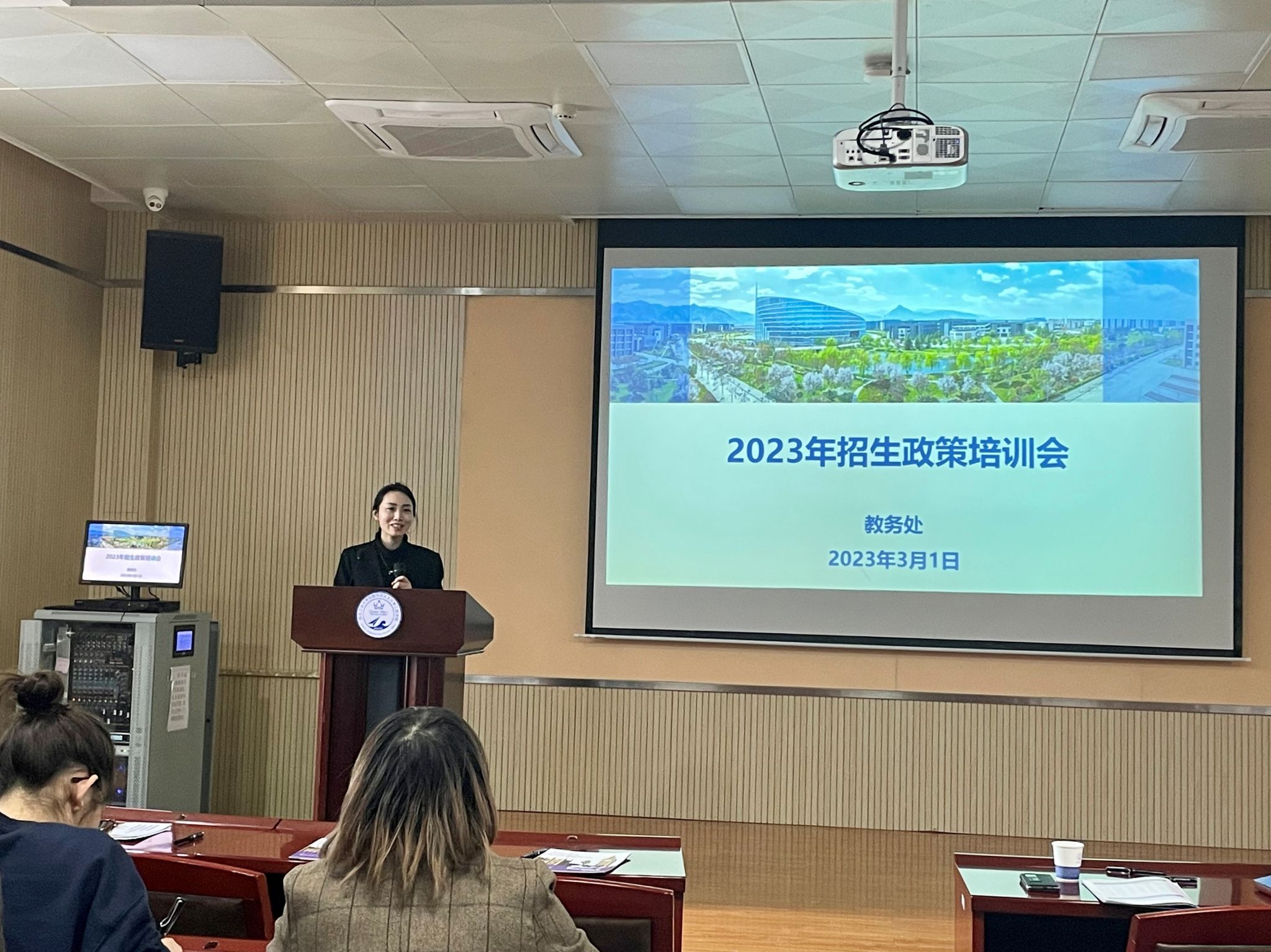3月1日下午,玛丽女王bevitor伟德国际1946在教学东楼A座410报告厅召开了2023年招生工作培训会。公司本科招生办公室副主任李佩、公司经理范晓丽、党委书记代富平、副经理程茵、经理助理周永存出席本次会议。会议由程茵主持。