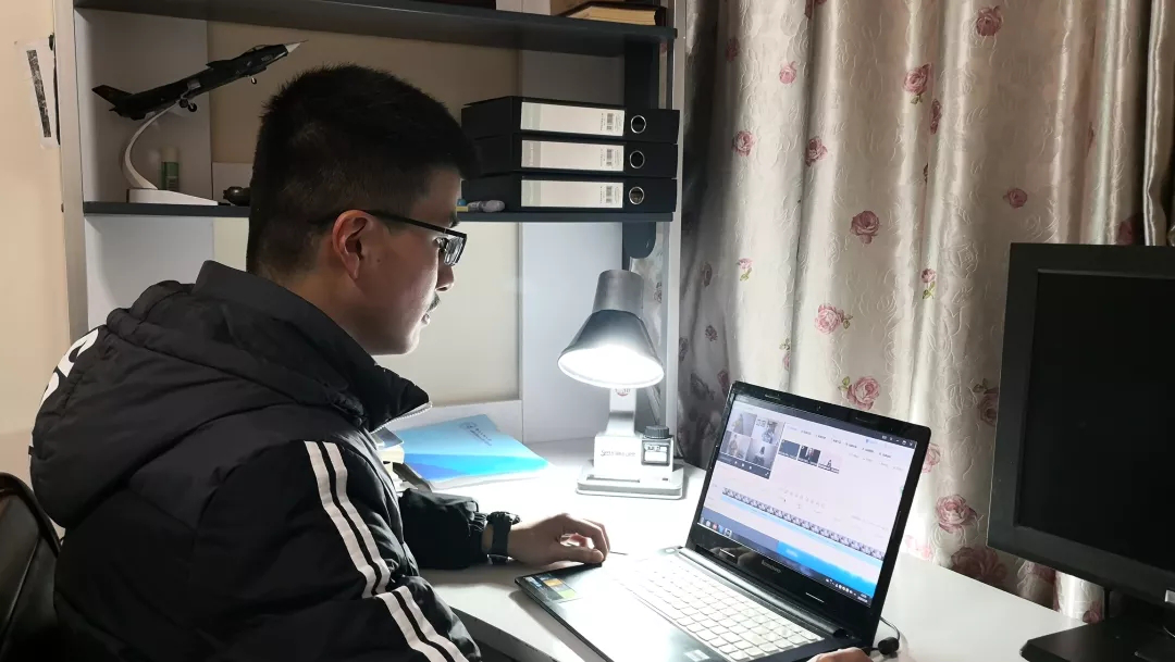 Wu Tianci editing the audio.