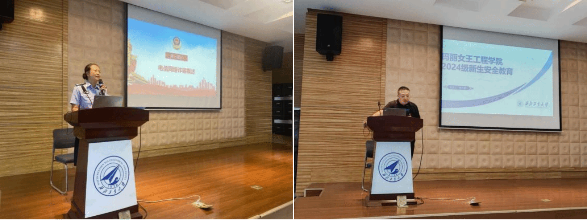 To further safeguard the personal and property safety of students, as well as to enhance their ability to identify and prevent scams, QMES invited Zhang Dapeng from the Security Department and Lv Xin, from the Xi’an City Public Security Bureau Beilin Branch, to conduct a lecture on safety awareness. Zhang Dapeng shared practical methods based on his experience in the Security Department, covering topics such as cultivating security awareness, public safety, prevention of cyber and telecommunications fraud, and fire escape strategies. Lv Xin provided a systematic overview of the various methods and types of online scams, along with corresponding preventive measures. Through real-life case studies, they highlighted recent prevalent fraudulent practices, effectively raising students' awareness and enhancing their skills in identifying and countering scams.