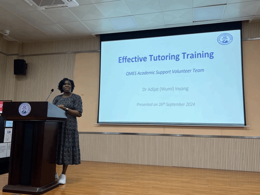 To further enhance the effectiveness and precision of academic support, QMES held the 2024 Autumn Semester Academic Support Workshop on the afternoon of September 26th. Adijat Inyang Omowumi, QMUL faculty member, Tong Miaomiao from the Student Affairs Centre, and the entire QMES Academic Support Team attended the session.