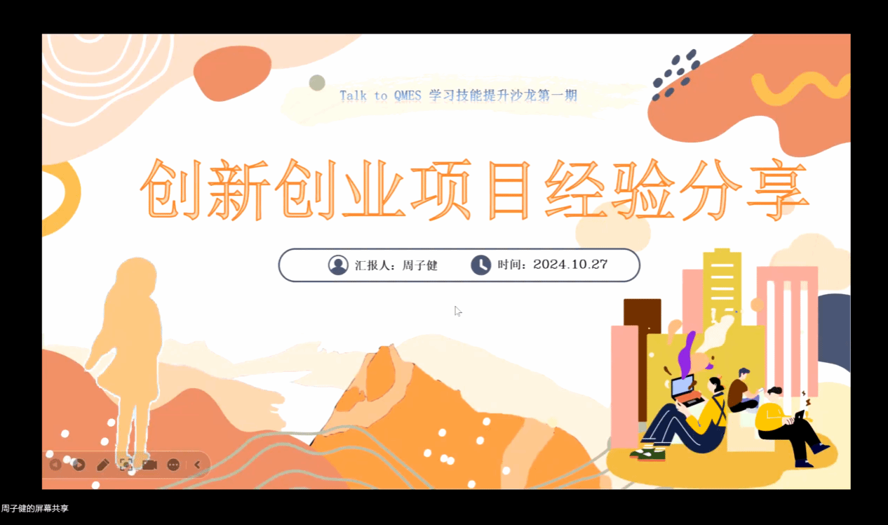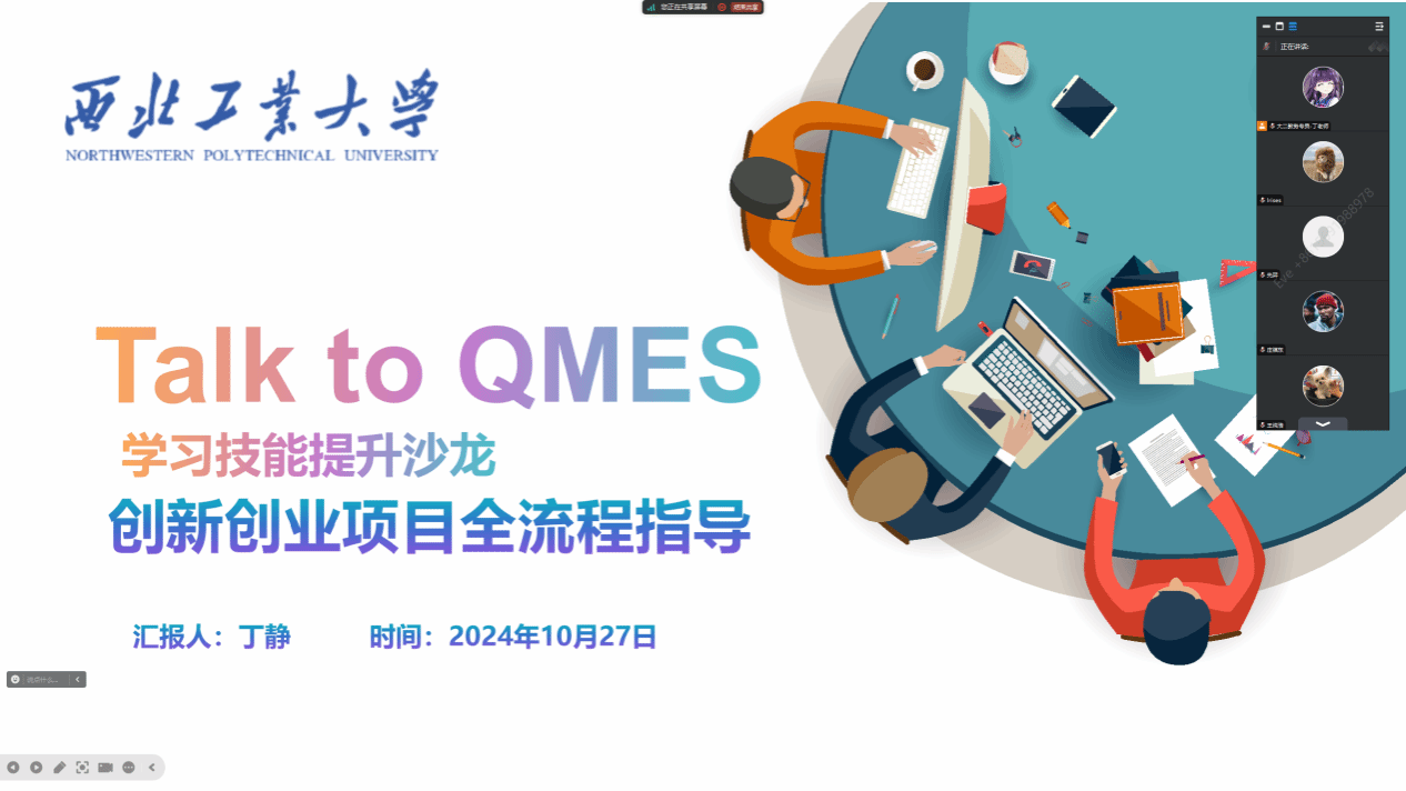 On 27th October 2024 at 21:00, QMES hosted an online event titled “Talk to QMES: Study Skills Enhancement Salon” to assist students in improving their study skills and academic performance. This event primarily targeted undergraduates from the 2024 and 2023 cohort undergraduates. Led by Ding Jing, the second-year academic affairs officer, the session featured insights from Zhou Zijian, 2023 cohort student. Through training guidance and interactive discussions, the event aimed to equip participants with effective skills and methods relevant to innovation, entrepreneurship project processes, and research training. A total of 98 undergraduates attended the event.