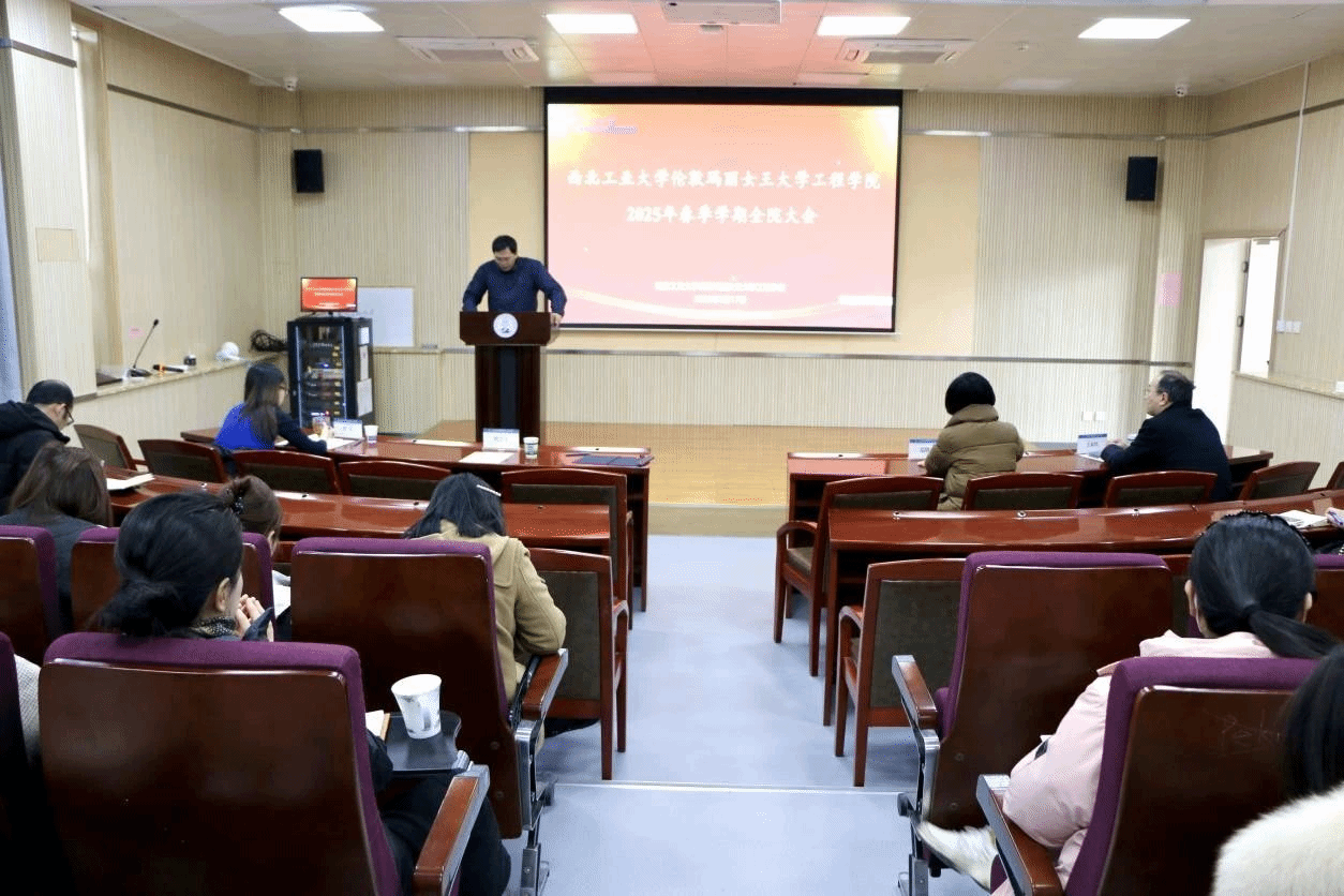 On the morning of February 17, QMES held its General Meeting for the Spring Semester of 2025, during which the meeting spirit of the NPU Winter Break Symposium and the new semester’s leadership meeting were communicated and discussed. The meeting was attended by Fan Xiaoli, Dean of QMES, Dai Fuping, Party Secretary of QMES, Wang Yongxin, Vice Dean of QMES, Cheng Yin, Deputy Secretary of the QMES Party Committee, as well as all faculty and staff members. Dai Fuping chaired the meeting.