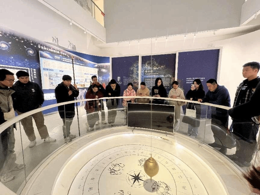 Upon entering the Time Science Museum, the students first visited the “History of Time Measurement Corridor”, where they explored the evolution of timekeeping from sundials and gnomons to atomic clocks, gaining a profound appreciation for the continuous advancement of human time measurement technology. Within the exhibition, the Foucault pendulum vividly demonstrated the Earth’s rotation, prompting students to reflect on fundamental physical principles. The display of the BeiDou Navigation System provided the students with a deeper understanding of the BeiDou satellite navigation project, allowing them to fully appreciate the development of China’s BeiDou programme, significantly broadening their perspectives and horizons.
