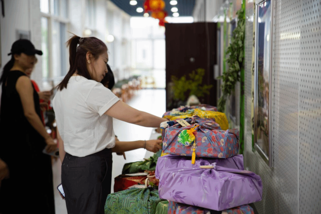 The venue was filled with the refreshing scent of mugwort, with Dragon Boat Festival-themed decorations hanging from the corridors. On the long tables were neatly arranged traditional items such as pastries, zongzi (glutinous rice dumplings), sachets, and mugwort sprigs.