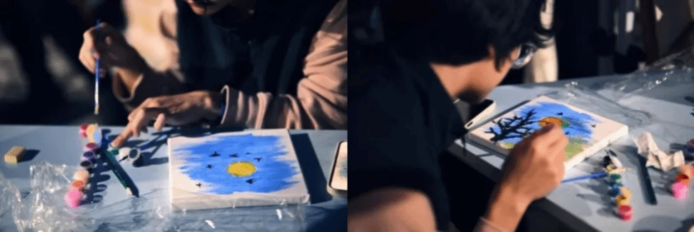 Under the luminous moonlight, students’ creative enthusiasm remained undiminished, as successive full moons quietly emerged on their canvases. Though we come from all corners of the country, in this moment, we gathered under the campus moonlight to share our reflections on the Mid-Autumn Festival. As the saying goes, “Where there is a moon in one’s heart, brilliance flows from the brush.” With the vibrant colours of youth, we left a distinctive mark on this festival, wishing that every year, we may once again enjoy the full moon.
