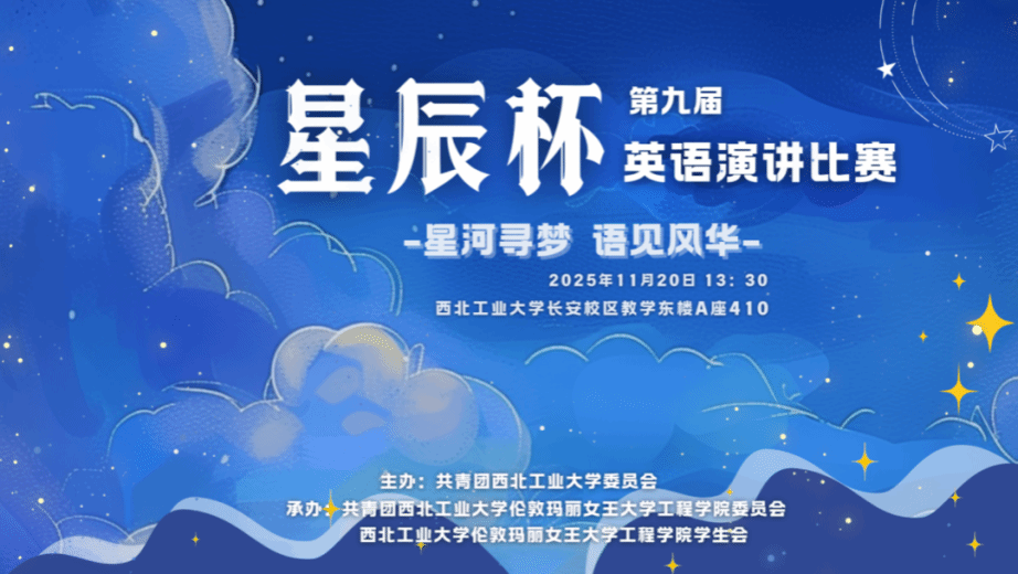 On 20 November, the final round of NPU’s ninth “Star Cup” English Speech Contest concluded successfully. The event was organised by the Communist Youth League Committee of NPU and co-hosted by the Youth League Committee and Student Union of QMES. The judging panel comprised Cheng Yin, Deputy Secretary of the QMES Party Committee; Liu Chenyi, Deputy Secretary of the Youth League Committee of NPU; Associate Professor Wu Ruilin from the School of Foreign Studies; Colin Crick, a UK faculty member at QMES; and Yang Fenping, Secretary of the Youth League Committee of QMES. The event was presided over by Zhang Haoyu and Li Yi, both undergraduate students from the QMES Class of 2025.