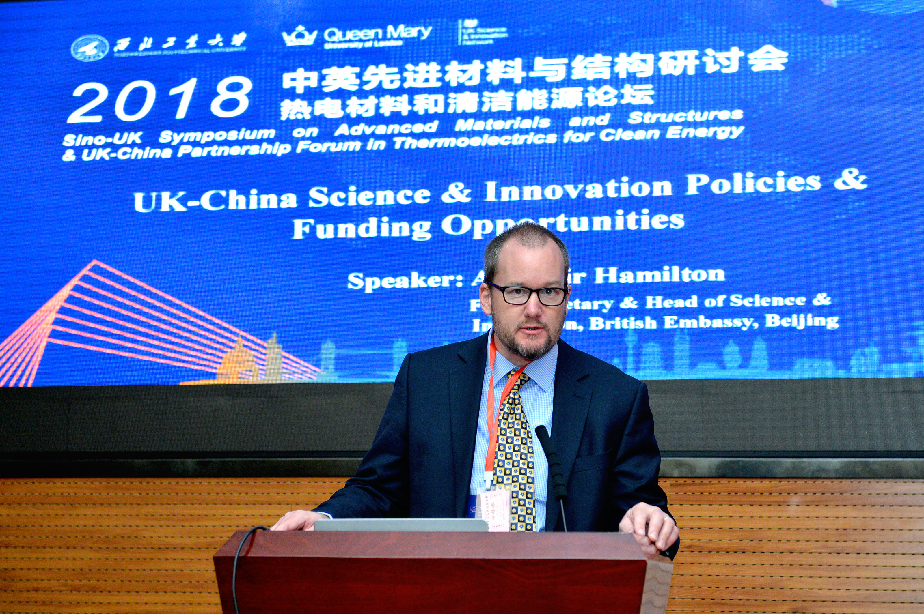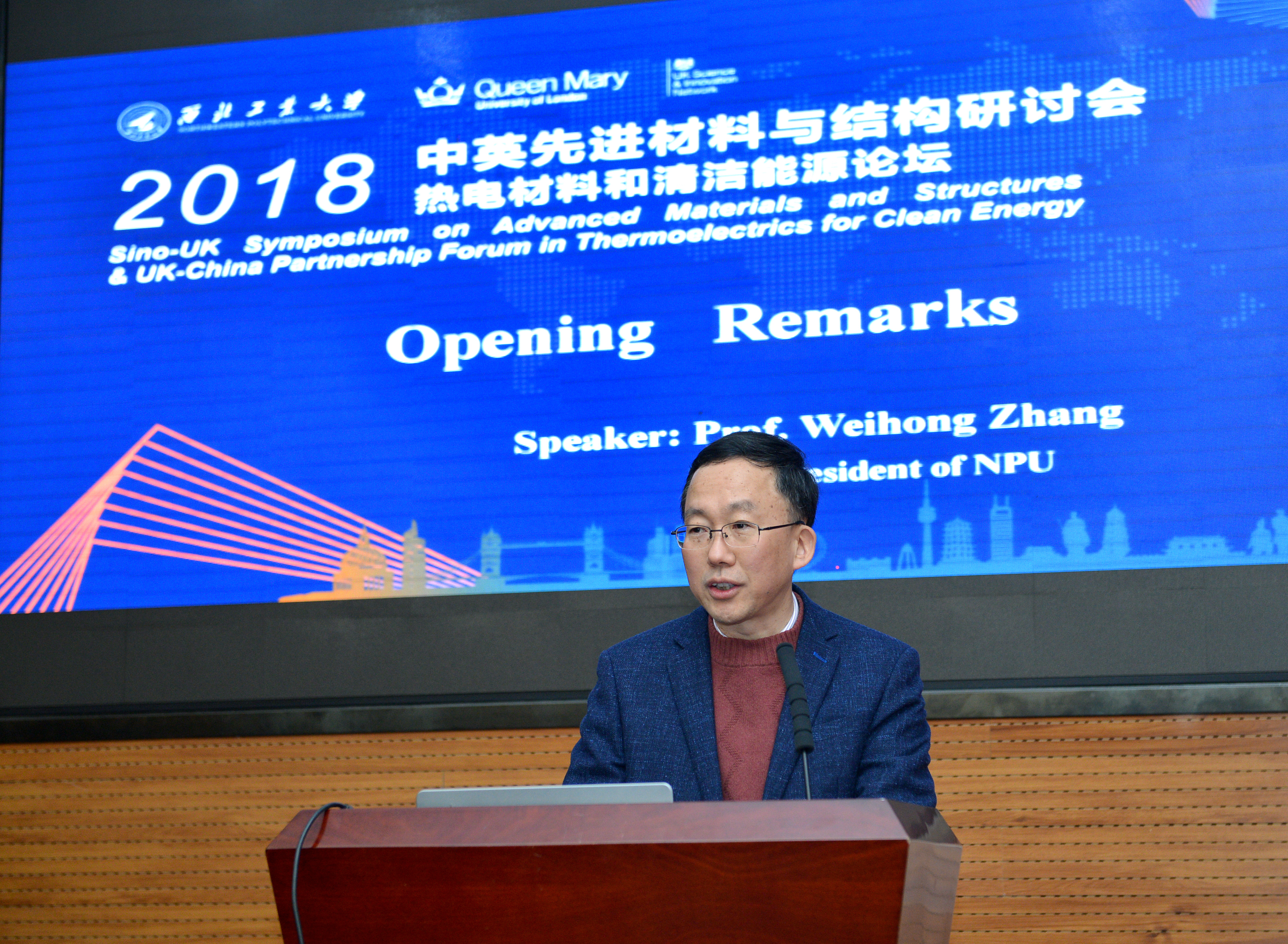 The 2018 Sino-UK Symposium on Advanced Materials and Structures & UK-China Partnership Forum in Thermoelectrics for Clean Energy which was jointly hosted by British Embassy, Beijing, Northwestern Polytechnical University (NPU), Queen Mary University of London (QMUL) andXi’an National Civil Aerospace Industrial Base successfully took place in International Conference Center of NPU on November 5, 2018. More than 50 internationally renowned experts and scholars have delivered academic reports and held in-depth discussions on the topics of thermoelectric materials and clean energy.